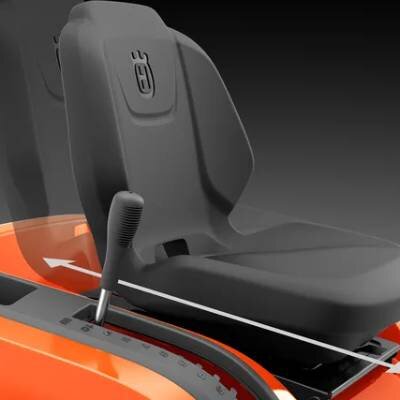 - Отличается прочностью и долговечностью, оснащен бампером для защиты от повреждений кустарником. Работа оператора удобна и безопасна благодаря регулируемому креслу, увеличенному месту для ног, а также системе безопасности ROS, отключающей ножи при движении задним ходом.